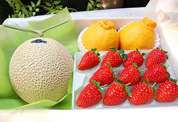 | 内容 | <2月、3月の旬のフルーツを詰め合わせました> ・クラウンメロン(静岡)1玉 ・まりひめ苺(和歌山)Lサイズ以上約8〜11粒 ・デコポン(長崎など)2Lサイズ以上2玉 |